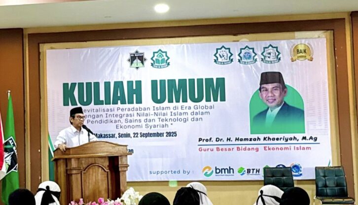 HidayatullahMakassar.id – Sekolah Tinggi Agama Islam (STAI) Al Bayan Hidayatullah Makassar menyelenggarakan kuliah umum dengan tema “Revitalisasi Peradaban Islam di Era Global dengan Integrasi Nilai Pendidikan Saintek dan Ekonomi Syariah”, Senin (22/9/2025), di Aula Al Bayan.