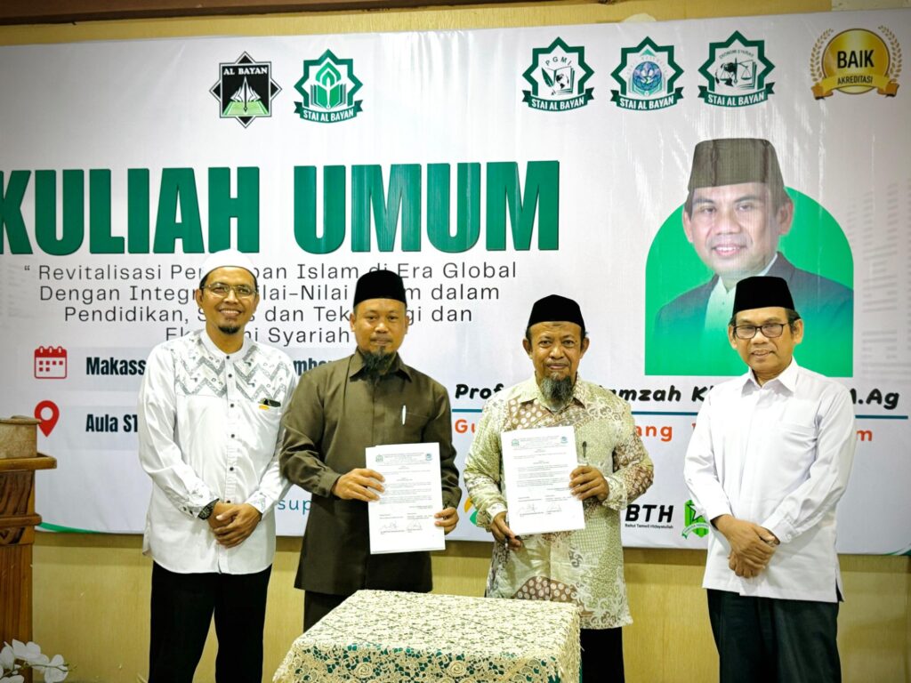Acara ini dirangkaikan dengan penandatanganan naskah kerjasama (MoU) antara STAI Al Bayan dengan Himpunan Ekonomi dan Bisnis Pesantren (Hebitren) Sulsel.